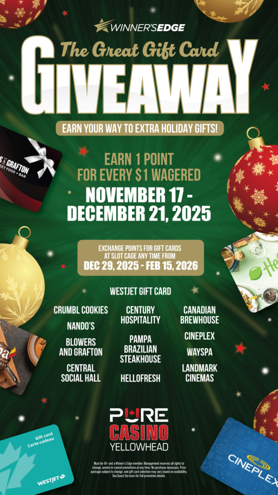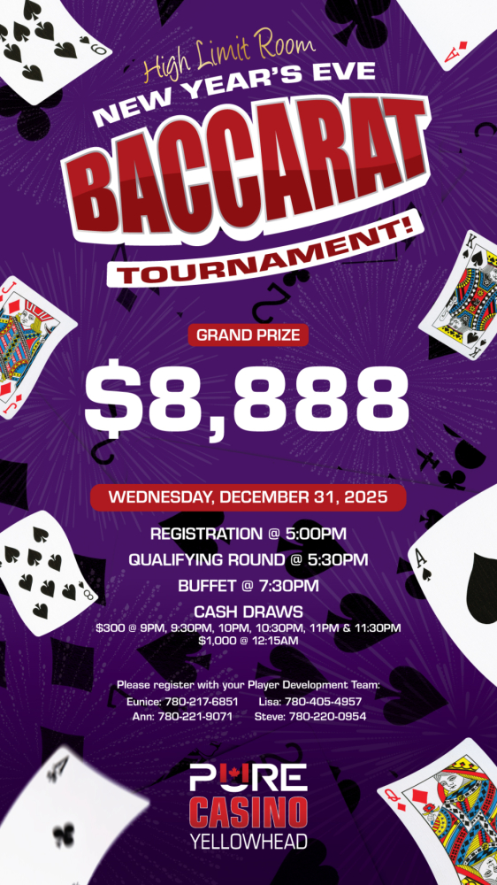 Our constantly rotating selection of events and offers means there’s always something new to check out. Just another way we bring you the best gaming experience possible. So head over to Pure Casino Yellowhead for a night of non-stop action and excitement.